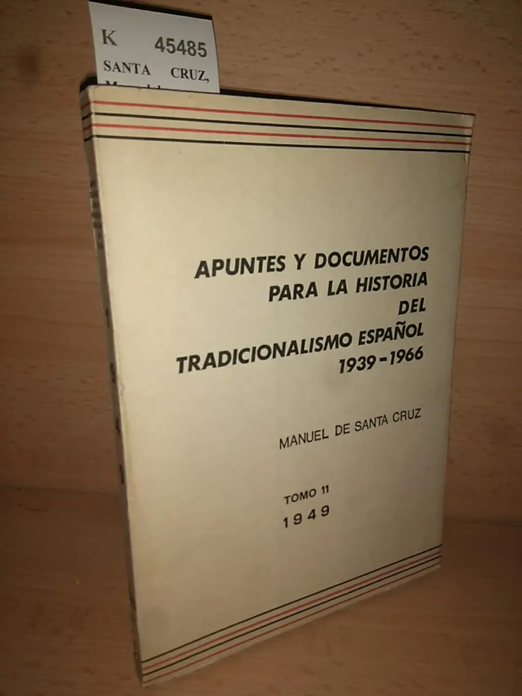 SANTA CRUZ, Manuel de Apuntes y documentos para la historia del tradicionalismo español. TOMO 11. AÑO 1949. s.e. 1981 (20 cm) Rustica. -5KG K (Ref.45485) carlismo historia contemporanea españa