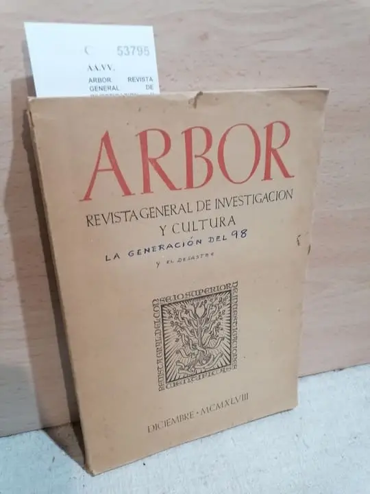 AA.VV. ARBOR. REVISTA GENERAL DE INVESTIGACION Y CULTURA. NUMERO EXTRAORDINARIO CONMEMORATIVO DE 1898 Madrid. 1948 200 p. aprox. (24 cm.) Enc. rustica. -5KG Ilustrs. y fotos bn Sello de anterior propietario, puntos de óxido. Título escrito a mano en cubierta. Nº 36, Tomo XI. Diciembre 1948. C (Ref.53795) revista cultura investigacion generacion 98