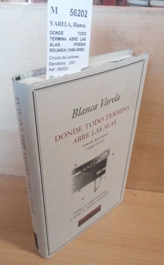 VARELA, Blanca DONDE TODO TERMINA ABRE LAS ALAS. POESIA REUNIDA (1949-2000) Círculo de Lectores. Barcelona. 2001 285 p. (22 cm) Enc. cartone con sobrecubierta -5KG Galaxia Gutenberg. Prologo de Adolfo Castañón y epílogo de Antonio Gamoneda. M (Ref.56202) poesia literatura