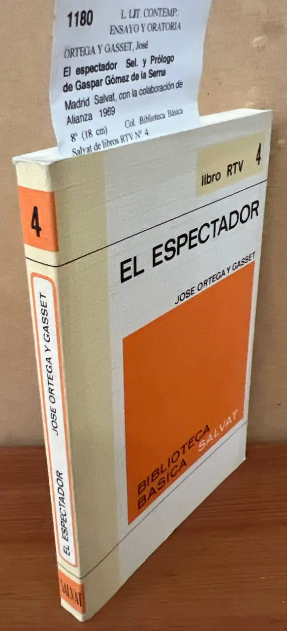 ORTEGA Y GASSET, José El espectador Salvat, con la colaboración de Alianza 1969 8º (18 cm) Rustica. -5KG Col. Biblioteca Básica Salvat de libros RTV Nº 4. Sel. y Prólogo de Gaspar Gómez de la Serna L (Ref.1180) literatura ensayo OFERTA20