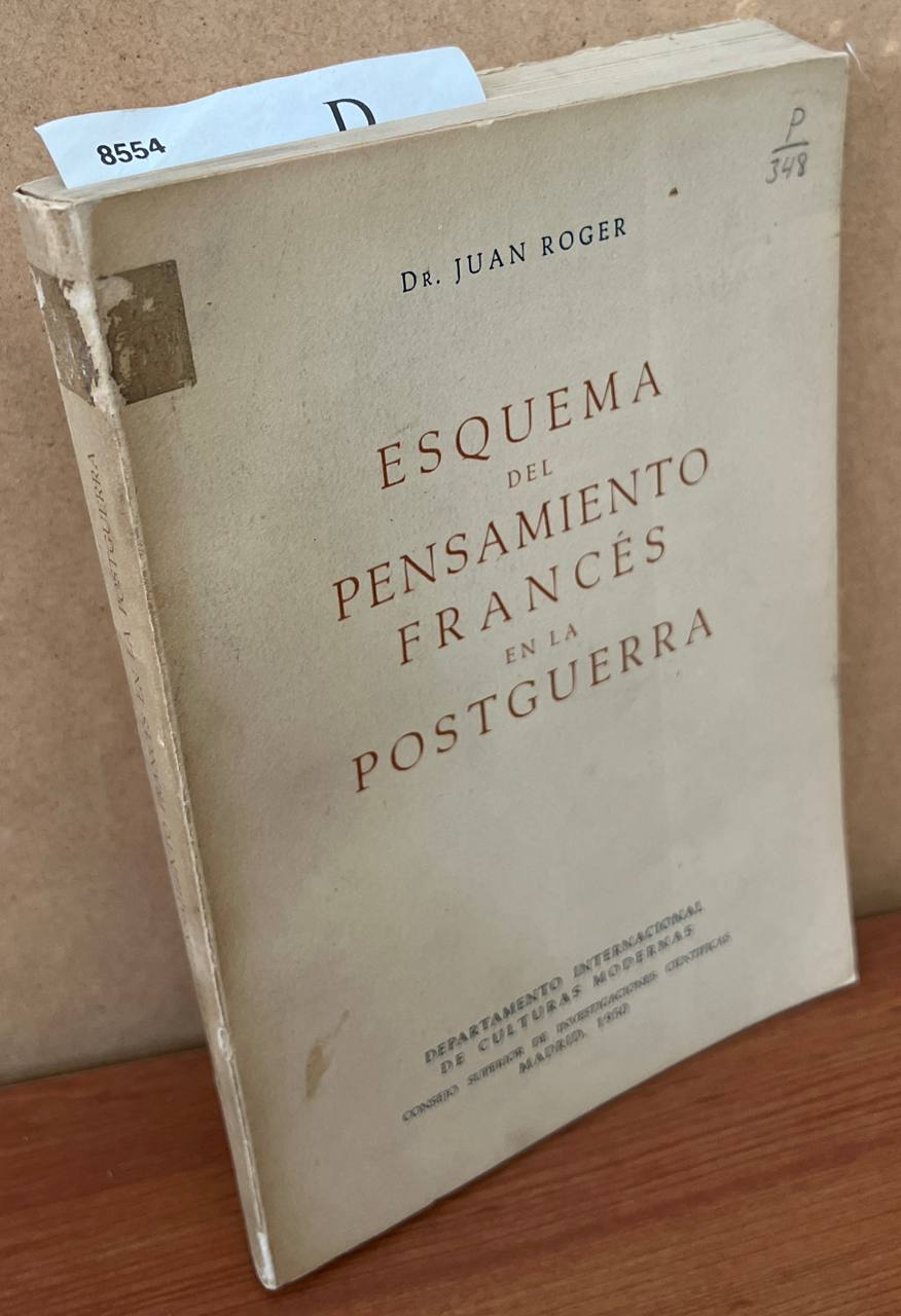 Roger Riviere, Juan Esquema del pensamiento francés en la postguerra / Juan Roger Madrid : C.S.I.C., Departamento Internacional de Culturas Modernas, 1950 1950 284 p. 22 cm. Rustica. -2KG fecha aprox. D (Ref.8554) historia contemporanea filosofia francia OFERTA20