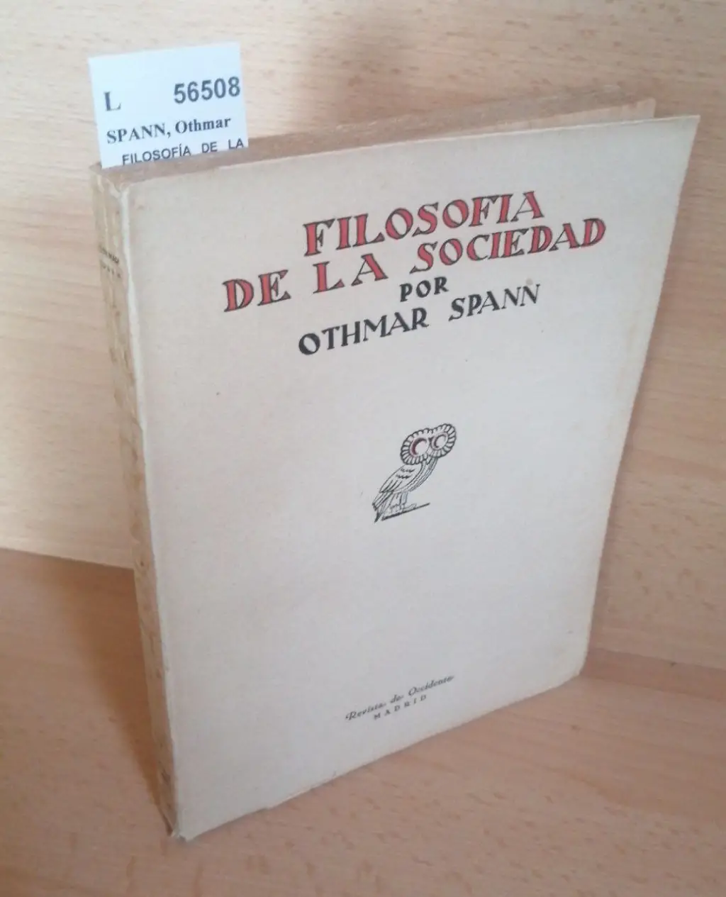 SPANN, Othmar FILOSOFÍA DE LA SOCIEDAD por — Revista de Occidente 1933 1ª ed. española. 231 p. (22,5 cm) Enc. rustica. -5KG Dedicatoria de anterior propietario Con un supuesto apéndice acerca de los supuestos filosóficos de las ciencias económicas L (Ref.56508) metafisica moral politica economia sociologia