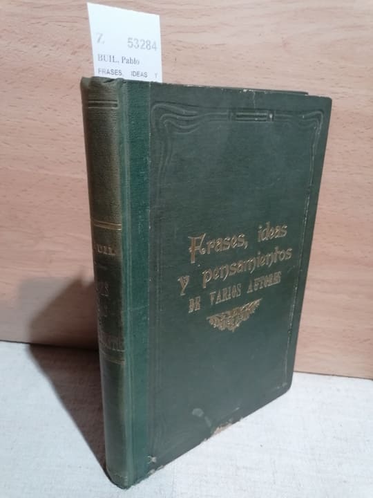 BUIL, Pablo FRASES, IDEAS Y PENSAMIENTOS DE VARIOS AUTORES recopilados por — Pedro Carra. Zaragoza 1916 342 p. (24,5 cm) Enc. tela. Sello de anterior propietario Z (Ref.53284) historia literatura autores frases celebres aforismos