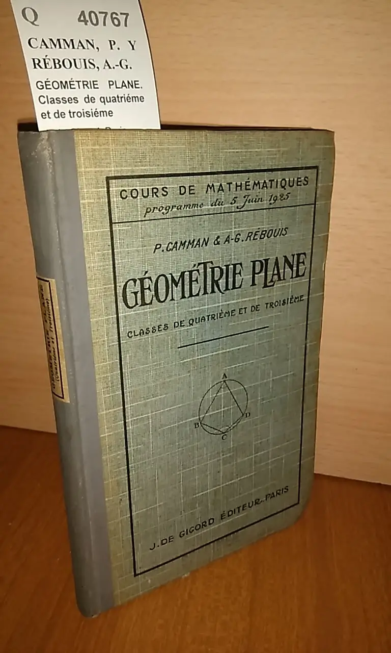 CAMMAN, P. Y RÉBOUIS, A.-G. GÉOMÉTRIE PLANE. Classes de quatriéme et de troisiéme J. de Gigord. Paris 1926 261 p. (18 cm) Enc. cartone lomo tela -5KG Sello de anterior propietario Q (Ref.40767) frances geometria dibujo matematicas