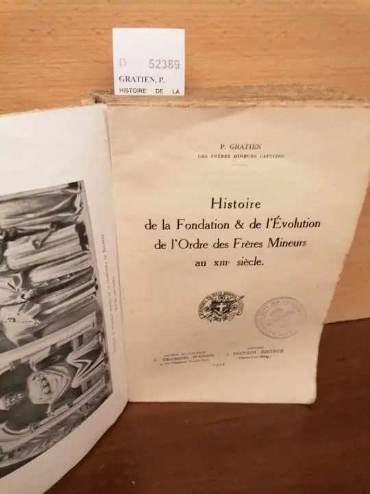 GRATIEN, P. HISTOIRE DE LA FONDATION ET DE LEVOLUTION DE LORDRE DES FRERES MINEURS AU XIII SIECLE. Soc. Lib. S. François DAssise. Paris 1928 699 p. (21 cm) Enc. rustica. -5KG Algunas ilustraciones fuera de texto bn. Desencuadernado. Falta cubierta anterior. Sello ant. prop. D (Ref.52389) frances historia medieval franciscanos capuchinos