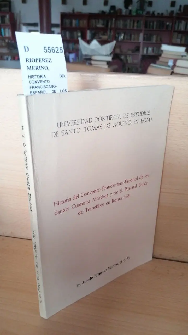 RIOPEREZ MERINO, Armando HISTORIA DEL CONVENTO FRANCISCANO-ESPAÑOL DE LOS SANTOS CUARENTA MARTIRES Y DE S. PASCUAL BAILON DE TRANSTIBER EN ROMA 1961. Ope. Guadalajara 1961 138 p. (24 cm) Enc. rustica. -2KG Sello de anterior propietario D (Ref.55625) historia religion espiritualidad convento