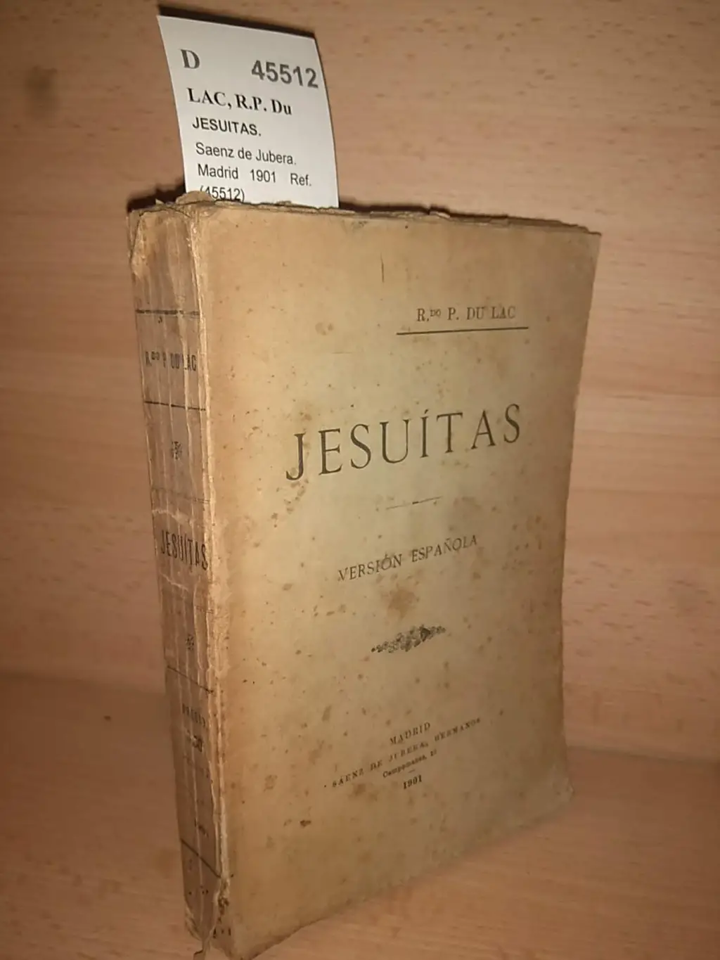 LAC, R.P. Du JESUITAS. Saenz de Jubera. Madrid 1901 440 p. (19 cm) Enc. rustica. -5KG Sello ant. prop. VERSION ESPAÑOLA. D (Ref.45512) religion jesuitas politica educacion historia