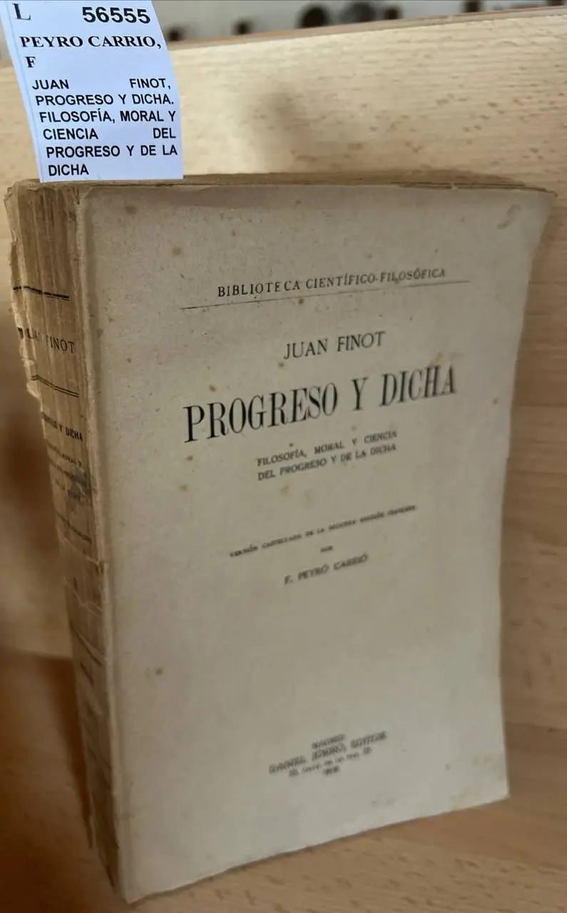 PEYRO CARRIO, F JUAN FINOT, PROGRESO Y DICHA. FILOSOFÍA, MORAL Y CIENCIA DEL PROGRESO Y DE LA DICHA Daniel Jorro. Madrid 1918 596 p. (23 cm) Enc. rustica. -5KG Deslucido Versión castellana de la segunda edición francesa L (Ref.56555) filosofia moral etica ciencia psicologia