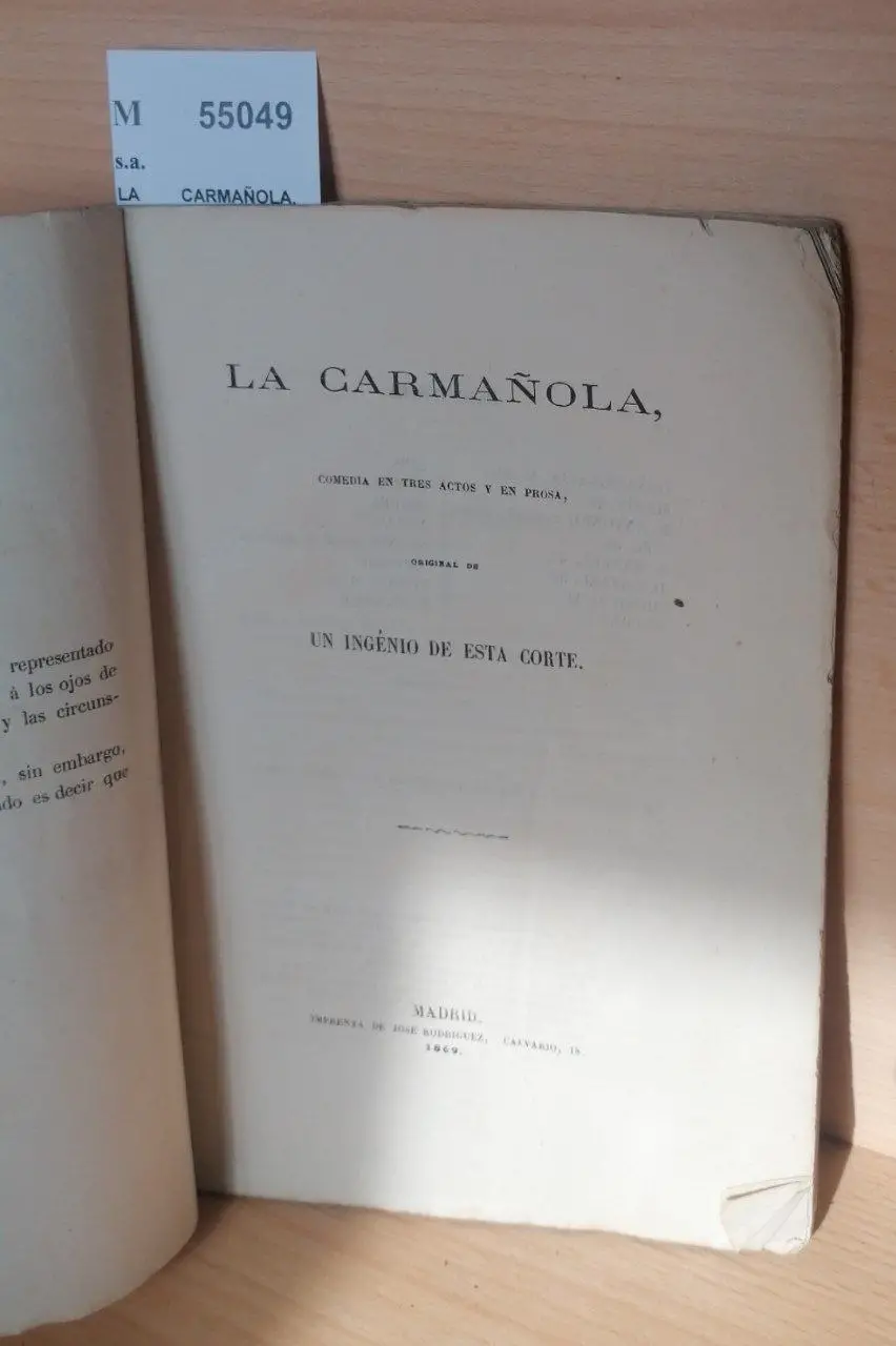 s.a. LA CARMAÑOLA. COMEDIA EN TRES ACTOS Y EN PROSA Jose Rodriguez. Madrid 1869 85 p. (20,5 cm) Enc. rustica. -5KG Original de UN INGENIO DE ESTA CORTE M (Ref.55049) teatro español siglo XIX literatura comedia historia madrid