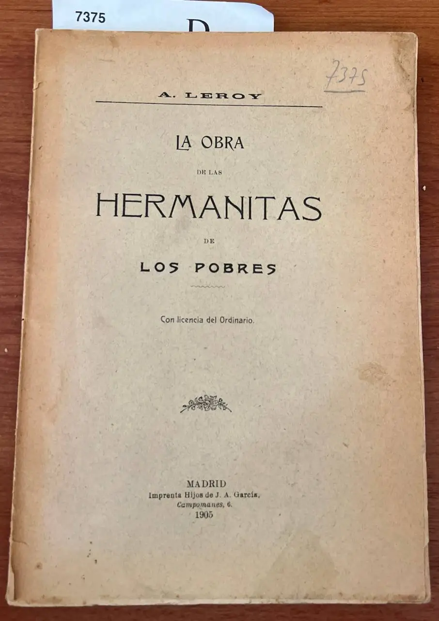 LEROY, A. La obra de las Hermanitas de los Pobres. Hijos de J.A. García. Madrid 1905 71 p. (19 cm) Rustica. -5KG D (Ref.7375) historia contemporanea caridad religiosas catolica iglesia OFERTA20