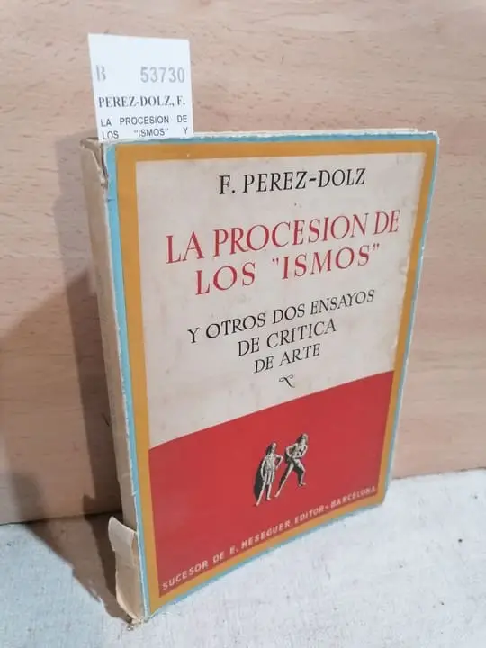 PEREZ-DOLZ, F. LA PROCESION DE LOS ISMOS Y OTROS DOS ENSAYOS DE CRITICA DE ARTE. EL MOMENTO ACTUAL DEL ARTE SOBRE LOS GENEROS DE PINTURA Sucesor E. Meseguer. Barcelona 1945 142 p. (22,5 cm.) Enc. rustica con sobrecubierta. -2KG Ilustrs. bn. Sello de anterior propietario, deslucido B (Ref.53730) arte pintura ensayo