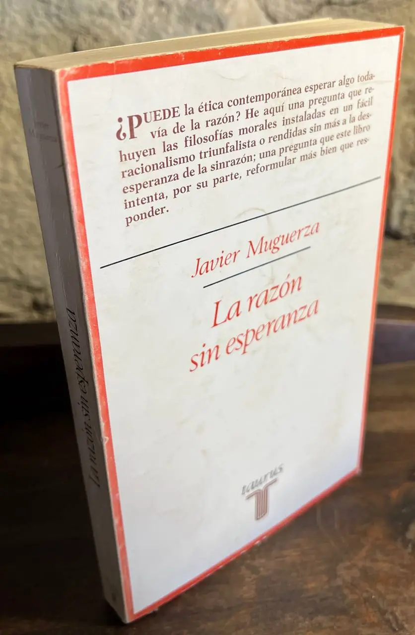 MUGUERZA, Javier LA RAZÓN SIN ESPERANZA. SIETE TRABAJOS Y UN PROBLEMA DE ÉTICA Editorial Tecnos. Madrid. 1977 -2KG Javier Muguerza. Editorial Tecnos. Madrid. 1977. (Ref.56825). 350 p. (21 cm). Rústica. Ejemplar usado en buen estado, con leves señales de uso. Ensayo filosófico en el que el autor reflexiona sobre la ética contemporánea y la vigencia de la razón. L (Ref.56825)