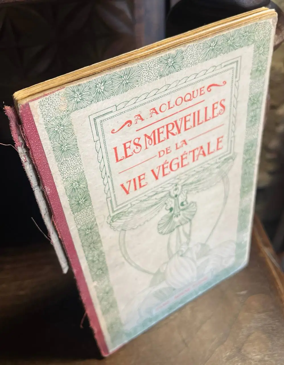 ACLOQUE, A. LES MERVEILLES DE LA VIE VÉGÉTALE Librairie Renouard 1920 -2KG Librairie Renouard, París, circa 1920. (Ref. 56792). 101 p. (23 cm). Encuadernación en cartoné. Ejemplar completo pero deteriorado, con defectos en el lomo y algunas hojas sueltas. Sellos de anterior propietario. Texto en francés. Libro de decoración modernista, profusamente ilustrado con dibujos y fotografías en el interior. Lomo deteriorado; con sellos y hojas sueltas. Q (Ref.56792)