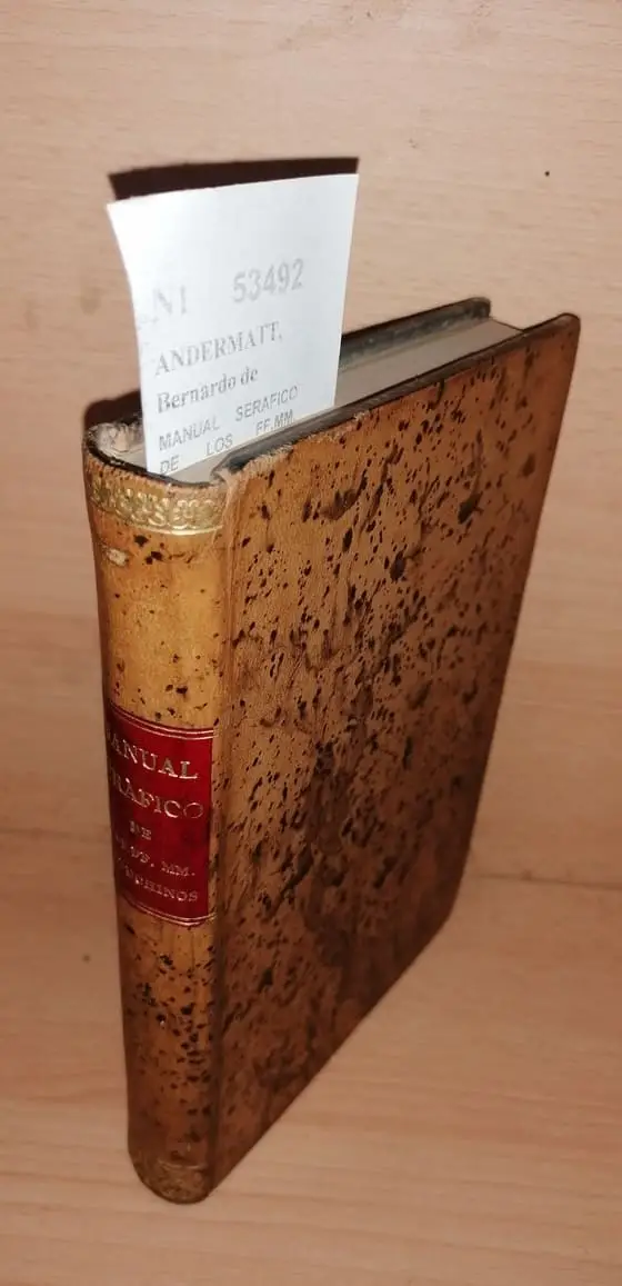 ANDERMATT, Bernardo de MANUAL SERAFICO DE LOS FF.MM. CAPUCHINOS DE LAS PROVINCIAS DE ESPAÑA Y SUS MISIONES publicado por mandato del Rmo. P. — Tip. Vaticana. Roma 1890 428 p. (19 cm.) Enc. plena piel pasta española. Tejuelo. -5KG Sello ant. prop. N1 (Ref.53492) capuchinos religion espiritualidad liturgia