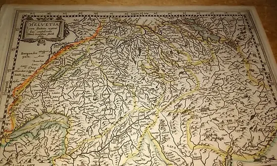 MAPA ANTIGUO: “HELVETIA cum sinitimis regionibus confaederatis Dirck Corneliszen Sivardt fecit”.