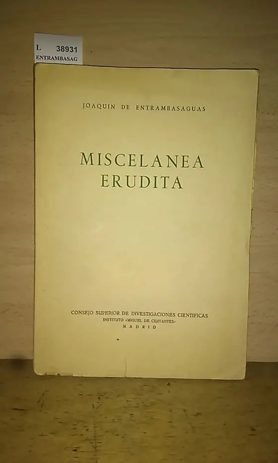 ENTRAMBASAGUAS, Joaquin de MISCELANEA ERUDITA. SERIE PRIMERA. C.S.I.C. Madrid 1957 228 p. (25,5 cm) Rustica. -5KG Ilustraciones bn. L (Ref.38931) literatura