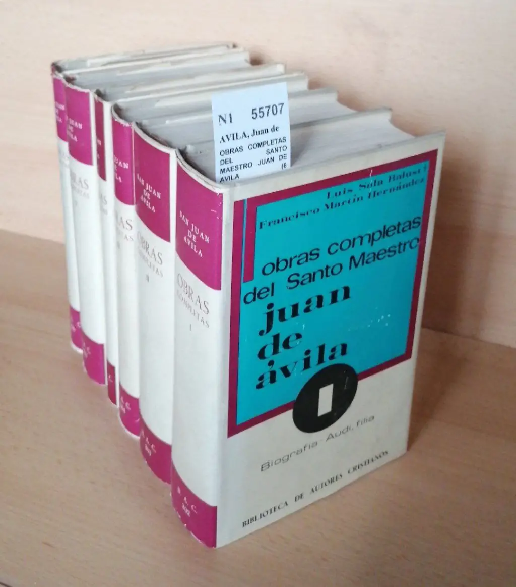AVILA, Juan de OBRAS COMPLETAS DEL SANTO MAESTRO JUAN DE AVILA (6 VOLUMENES) BAC. Madrid 1970 3 vols. (20 cm ) Enc. tela con sobrec. -5KG Sello de anterior propietario OBRA COMPLETA. Edicion critica. Introd. ed. y notas del Dr. D. Luis SALA BALUST. Nueva edicion, revisada y continuada por el Dr. D. Francisco MARTIN HERNANDEZ. N1 (Ref.55707) religion teologia espiritualidad sacerdocio