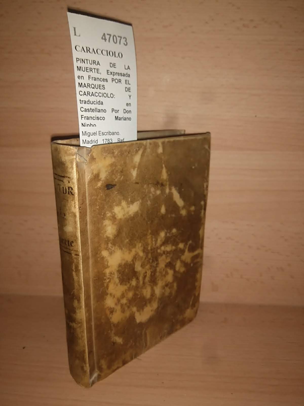 CARACCIOLO PINTURA DE LA MUERTE, Expresada en Frances POR EL MARQUES DE CARACCIOLO: Y traducida en Castellano Por Don Francisco Mariano Nipho. Miguel Escribano. Madrid 1783 XVI+ 302 p. (15,5 cm) Enc. pergamino. -5KG sello ant . prop. L (Ref.47073) ensayo religion