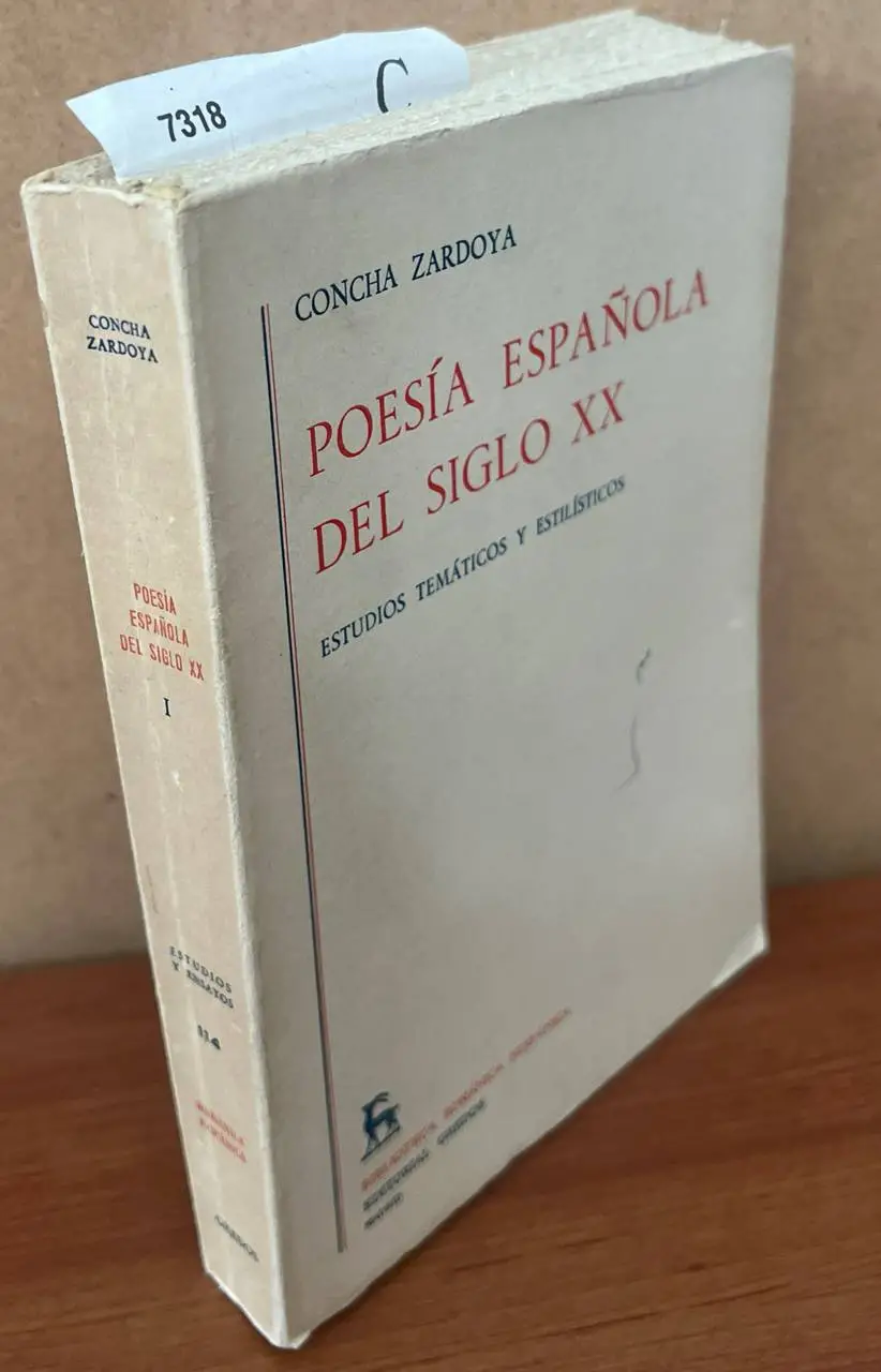 ZARDOYA, Concha Poesía española del siglo XX. Estudios tematicos y estilisticos. Gredos. Madrid 1974 330 p. (20 cm) Rustica. -5KG Biblioteca románica hispanica Tomo I. C (Ref.7318) historia literatura biografia 98 contemporanea OFERTA20