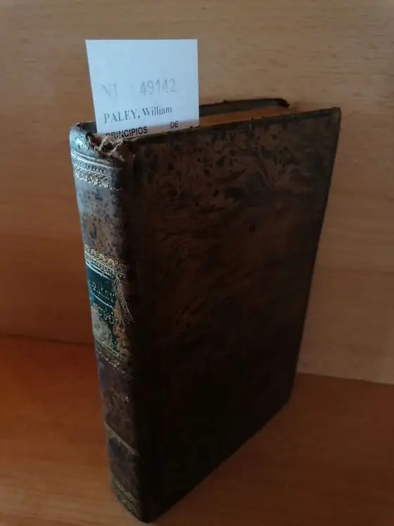 PALEY, William PRINCIPIOS DE FILOSOFIA MORAL, ESCRITOS EN INGLES POR — MODIFICADOS Y ADAPTADOS… POR EL PRESBITERO DON JUAN DIAZ DE BAEZA / FUNDAMENTOS DE RELIGION. PRUEBAS DE LA VERDAD DE LA RELIGION NATURAL Y REVELADA. Boix. Madrid 1841 XVI+ 334 p. Y 159 p. (19 cm) Enc. piel pasta española. Guardas al agua. -2KG sello ant. prop. Encuadernación algo rozada, con tejuelo ilegible. Puntos de óxido. 2 TOMOS ENCUADERNADOS JUNTOS EN 1 VOLUMEN. N1 (Ref.49142) religion filosofia moral apologetica