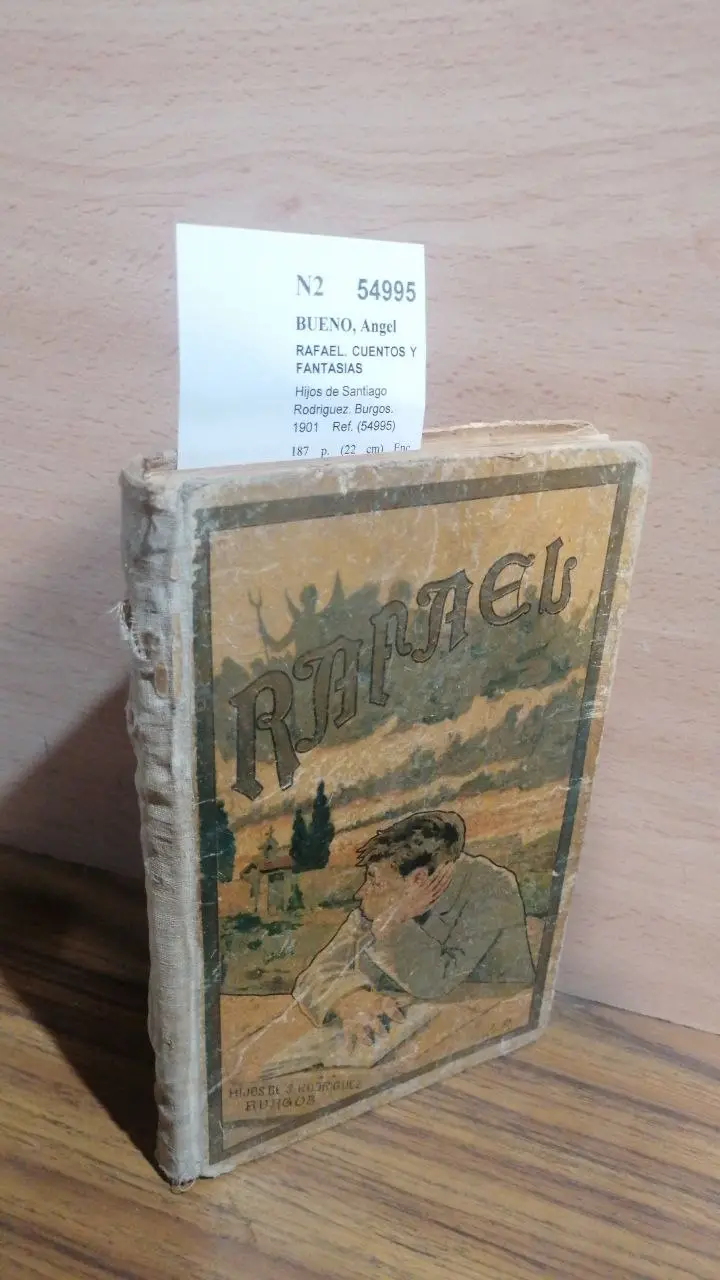 BUENO, Angel RAFAEL. CUENTOS Y FANTASIAS Hijos de Santiago Rodriguez. Burgos. 1901 187 p. (22 cm) Enc. cartone, lomo en tela -2KG Ilustrs. bn Fatigado N2 (Ref.54995) narrativa cuentos infantil