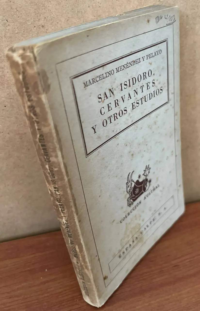 MENÉNDEZ Y PELAYO, Marcelino San Isidoro, Cervantes y otros estudios. Espasa-Calpe. Madrid 1941 Primera edicion . 8º (18 cm) Rustica. -5KG Deslucido. Puntos óxido. Col. Austral C (Ref.4003) historia literatura critica ensayo cervantina OFERTA20