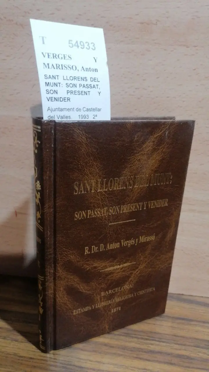 VERGES Y MARISSO, Anton SANT LLORENS DEL MUNT: SON PASSAT, SON PRESENT Y VENIDER Ajuntament de Castellar del Valles. 1993 2ª ed. 176 p. (16 cm) Enc. símil piel. -2KG Sello de anterior propietario FACSIMIL de la edición de Estampa y Llibreria Religiosa y Cientifica. Barcelona, de 1871. T (Ref.54933) cataluña san lorenzo munt