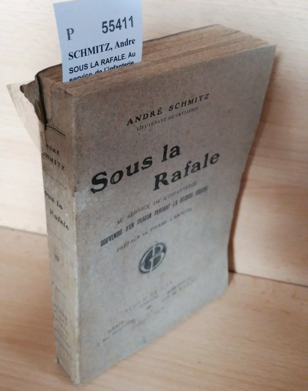 SCHMITZ, Andre SOUS LA RAFALE. Au service de l´infanterie. Souvenirs d´un dragon pendant la grande guerre. Bloud et gay. Paris 1918 285 p. 19 cm Enc. rustica. -5KG Intonso Preface de Pierre L´ermite. P (Ref.55411) frances temas militares francia guerra mundial